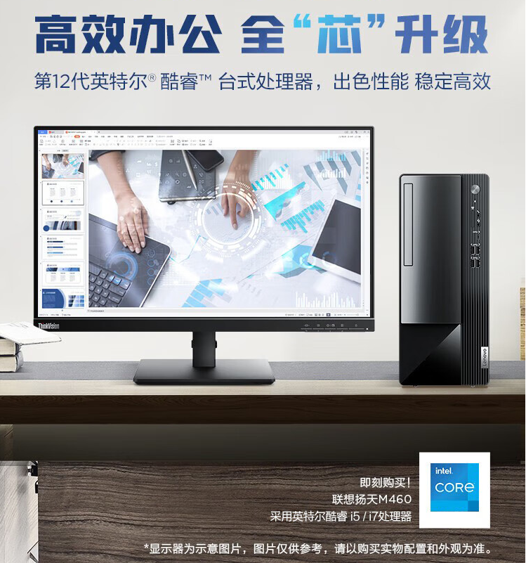 聯(lián)想M460臺式電腦i5-12400/8G內存/512G固態(tài)+23.8英寸高清顯示器